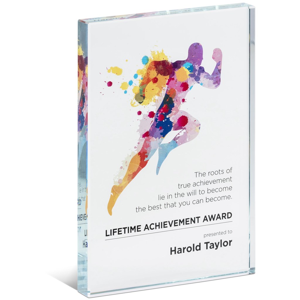 The clean and simple design of this optical glass award provides plenty of space for your design or message to shine. Choose digital printing or laser engraving to show your recognition or appreciation. Packaged in a smart black presentation box.